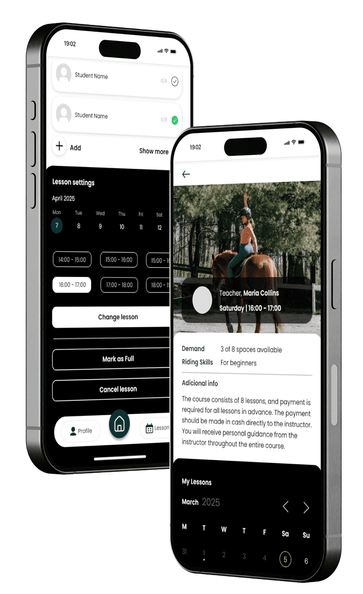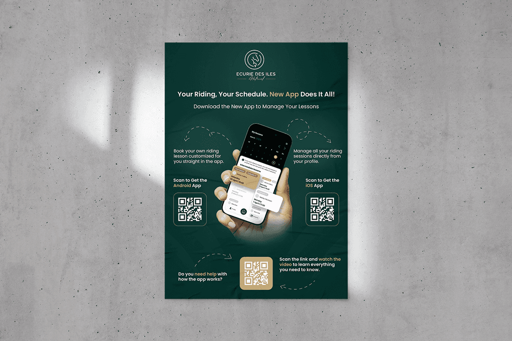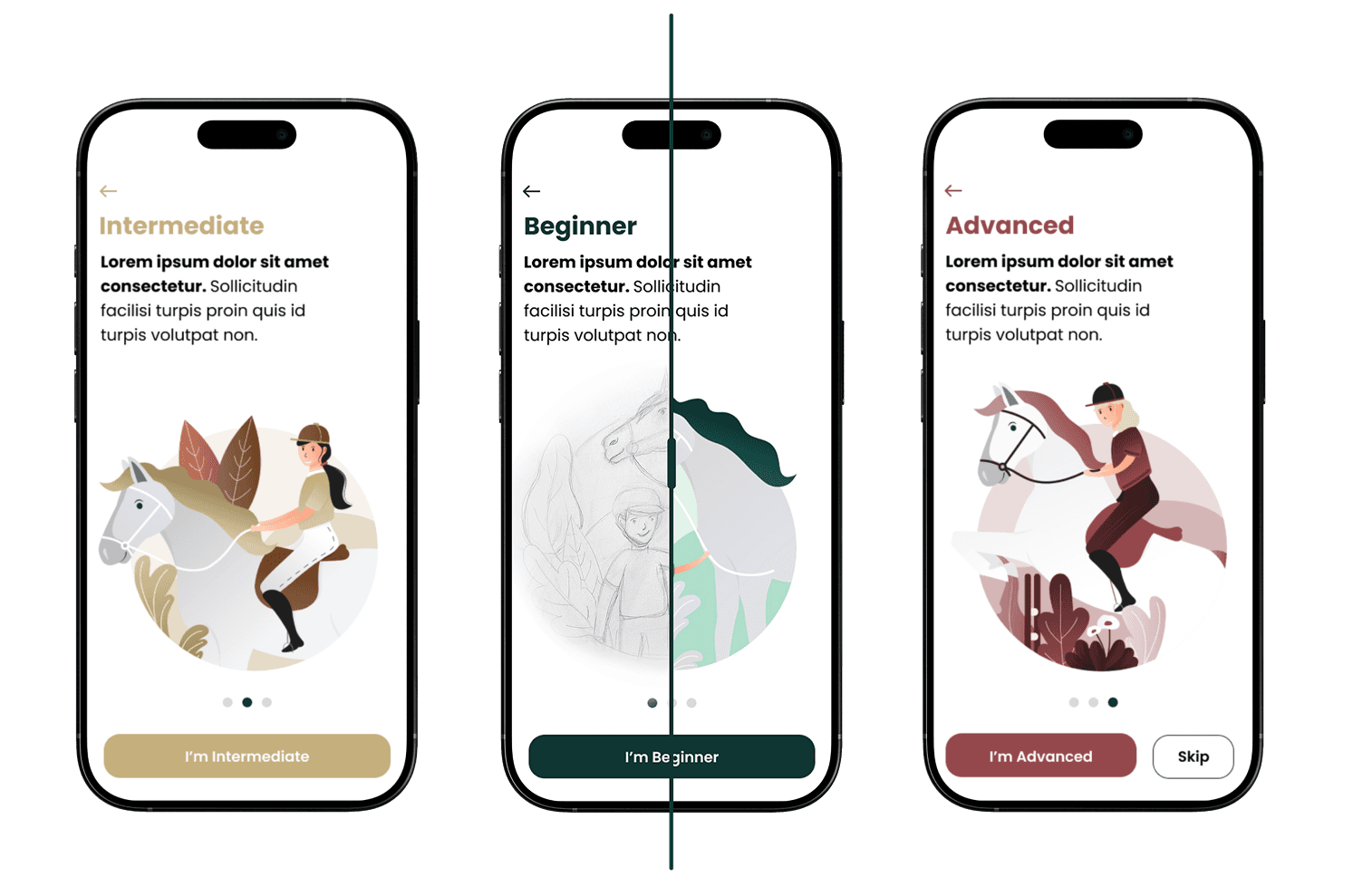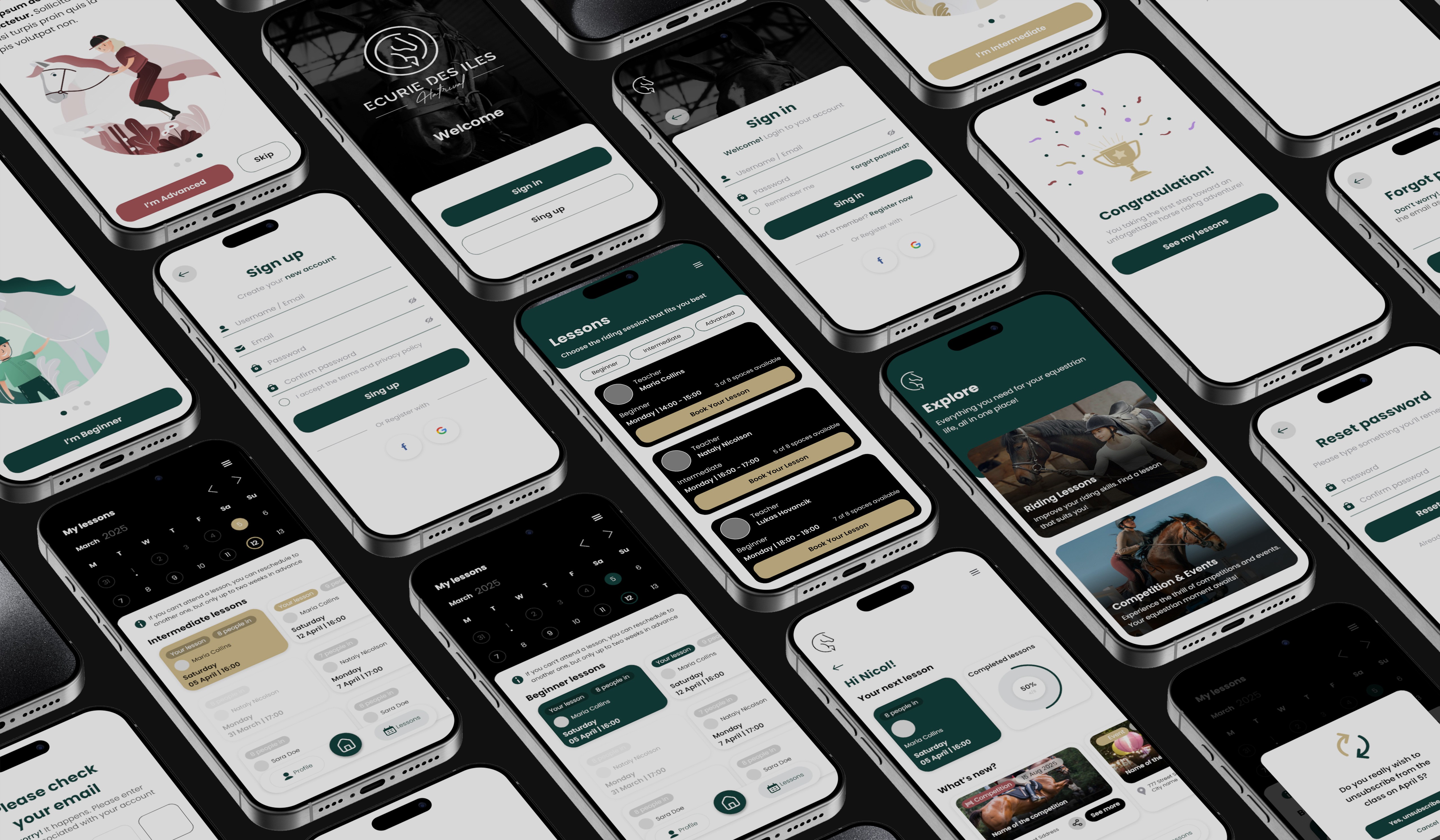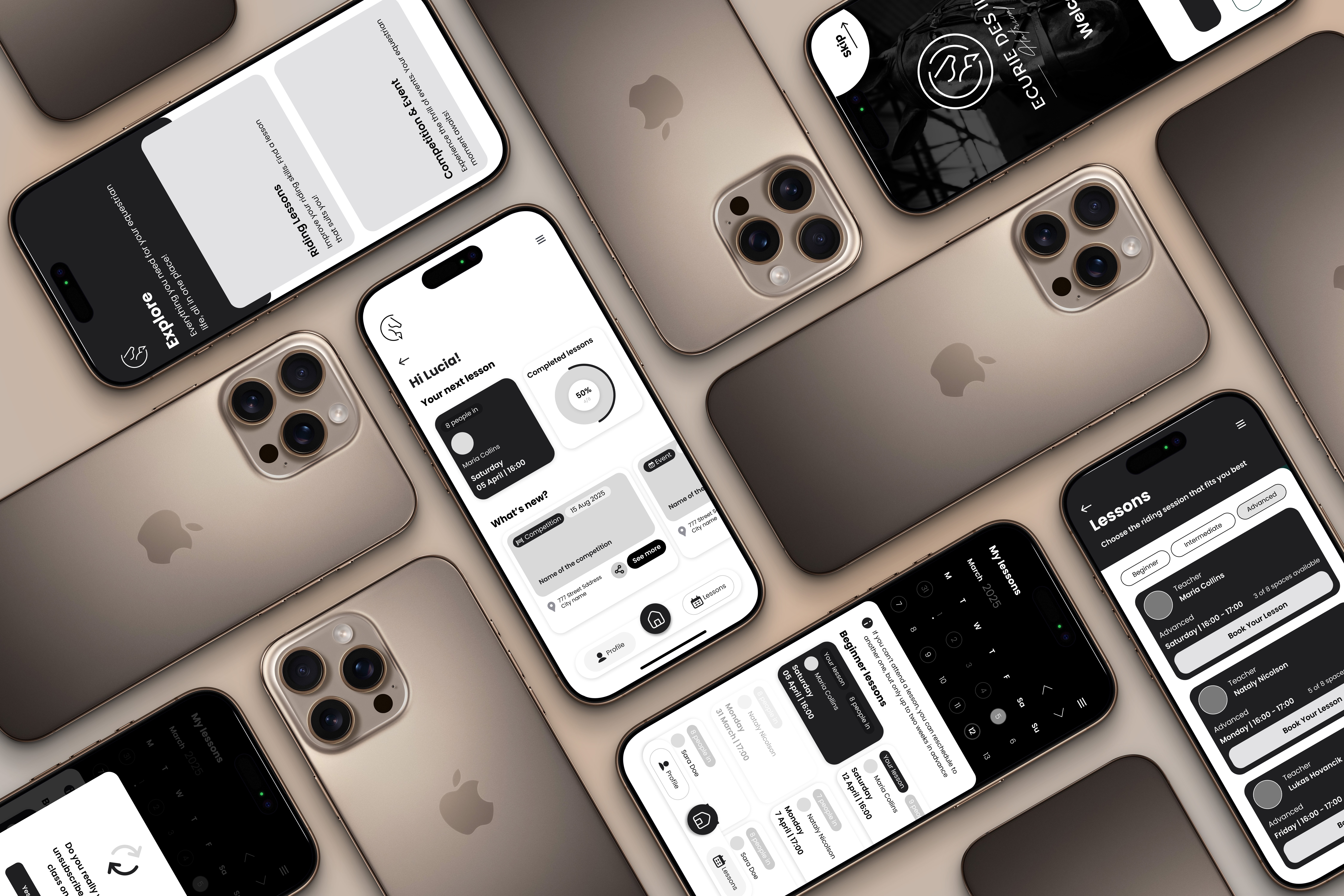 Designed the complete branding and UX/UI for a horse riding scheduling platform, creating visual identity, intuitive user flows, and a responsive app interface